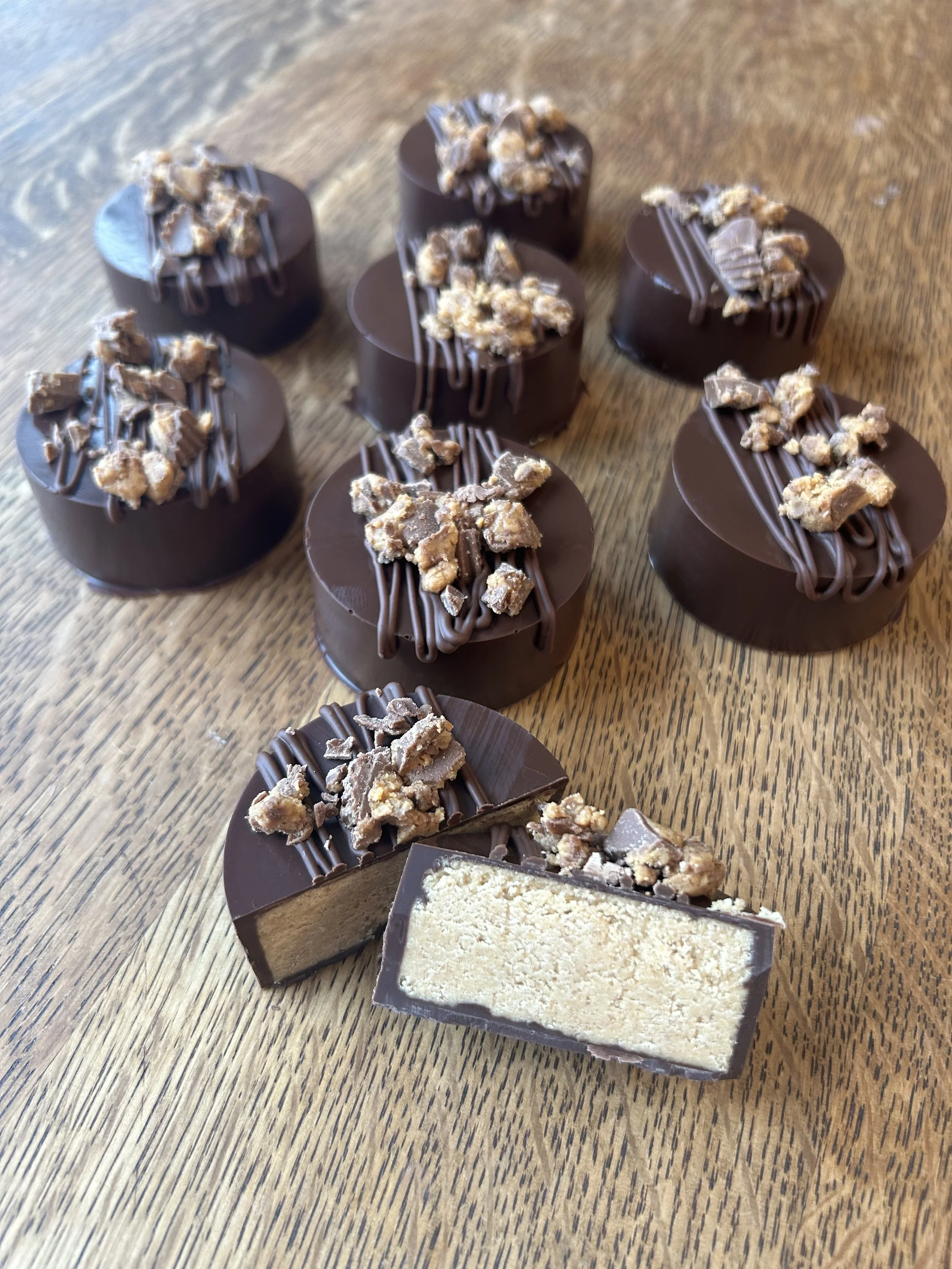 Featuring a graham cracker crust, and double chocolate homemade brownie. Topped with toasted marshmallow and chocolate.